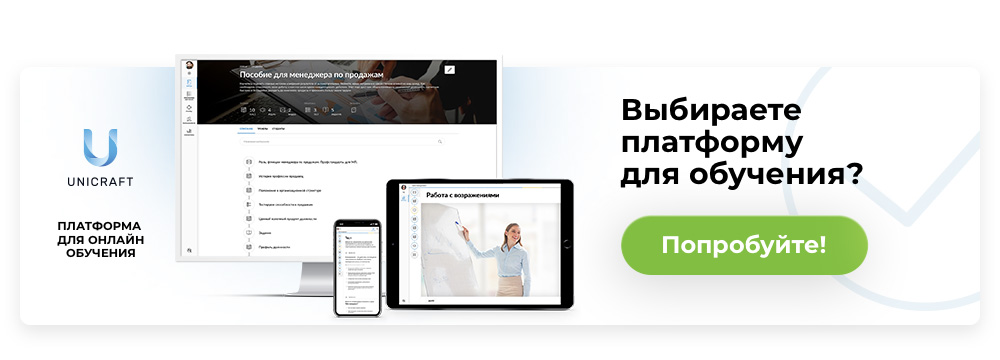 Материал можно в любой момент дополнить или изменить. Например, руководитель отдела продаж хочет дать менеджерам новый скрипт. Тогда он добавляет текст скрипта на платформу. И даже если сотрудники уже ознакомились со всем материалом, платформа вернет их на обновленный урок и покажет, какие появились изменения. Таким образом, можно быстро распространять новые знания и быть уверенным, что все сотрудники обладают актуальной информацией по выполнению той или иной работы.